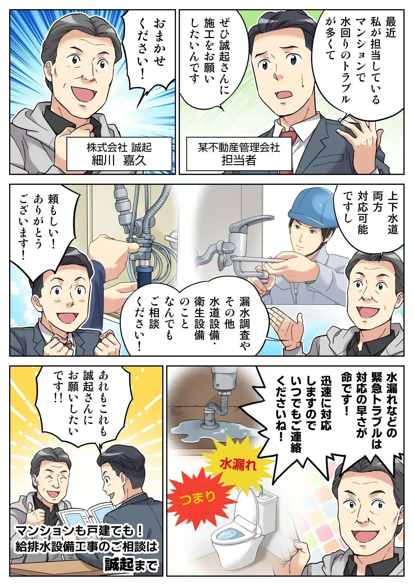 誠起では水道設備や空調設備、ポンプ・給排気ファン等